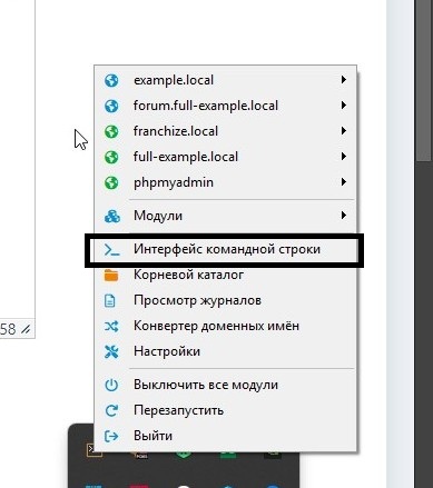 Итак, вот мы установили и запустили опенсервер соглашаясь на все, что нам предлагает установщик значок в трее появился, но при попытке войти даже на тестовый сайт по умолчанию https://full-example.local/ мы не сможем этого сделать, так как после установки сервер полноценно не работает и чтобы запустить сайт на Openserver 6 версии, нужно проделать нехитрые манипуляции. А именно запустить интерфейс командной строки.